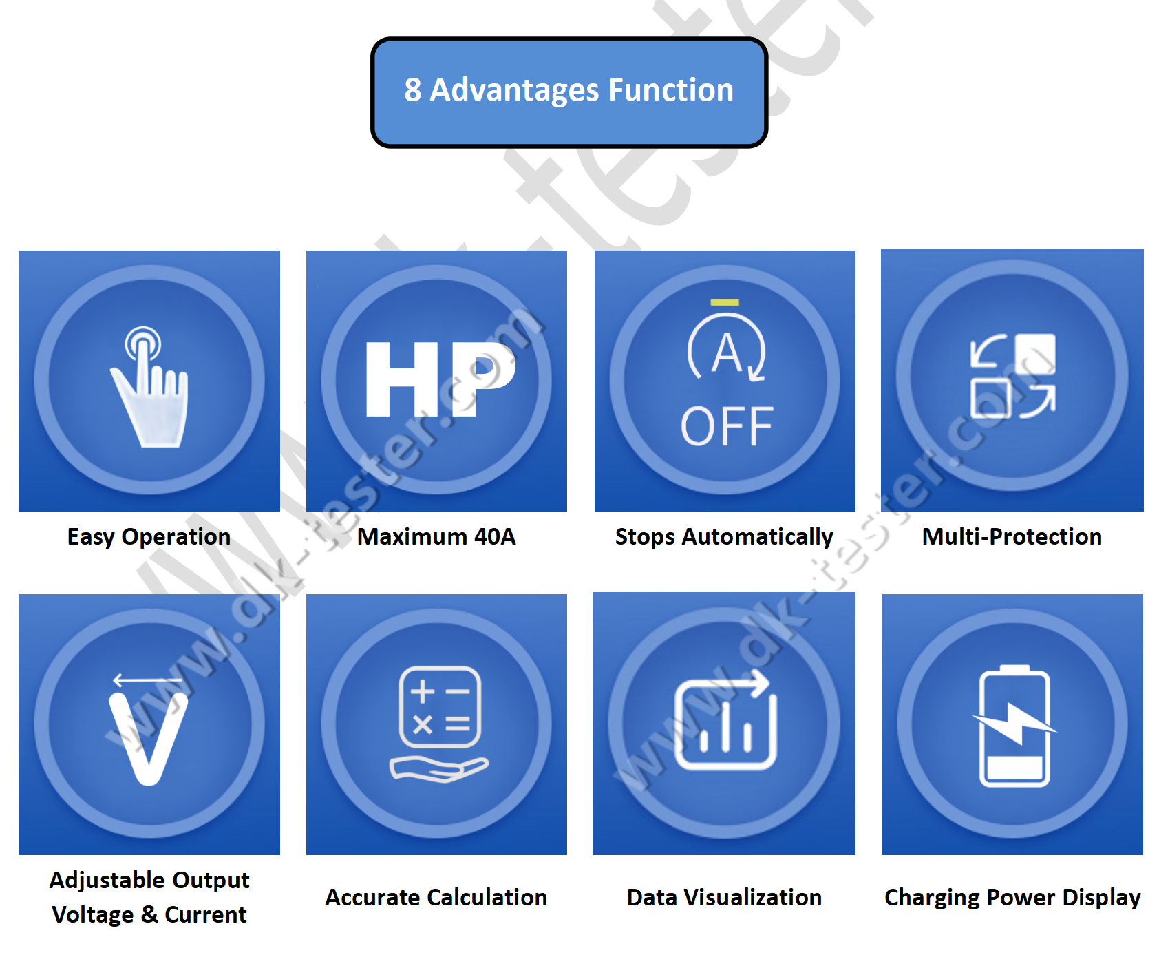 » Multiple protection functions, such as reverse connection protection, over-voltage and over-current protection, over-temperature protection, etc.